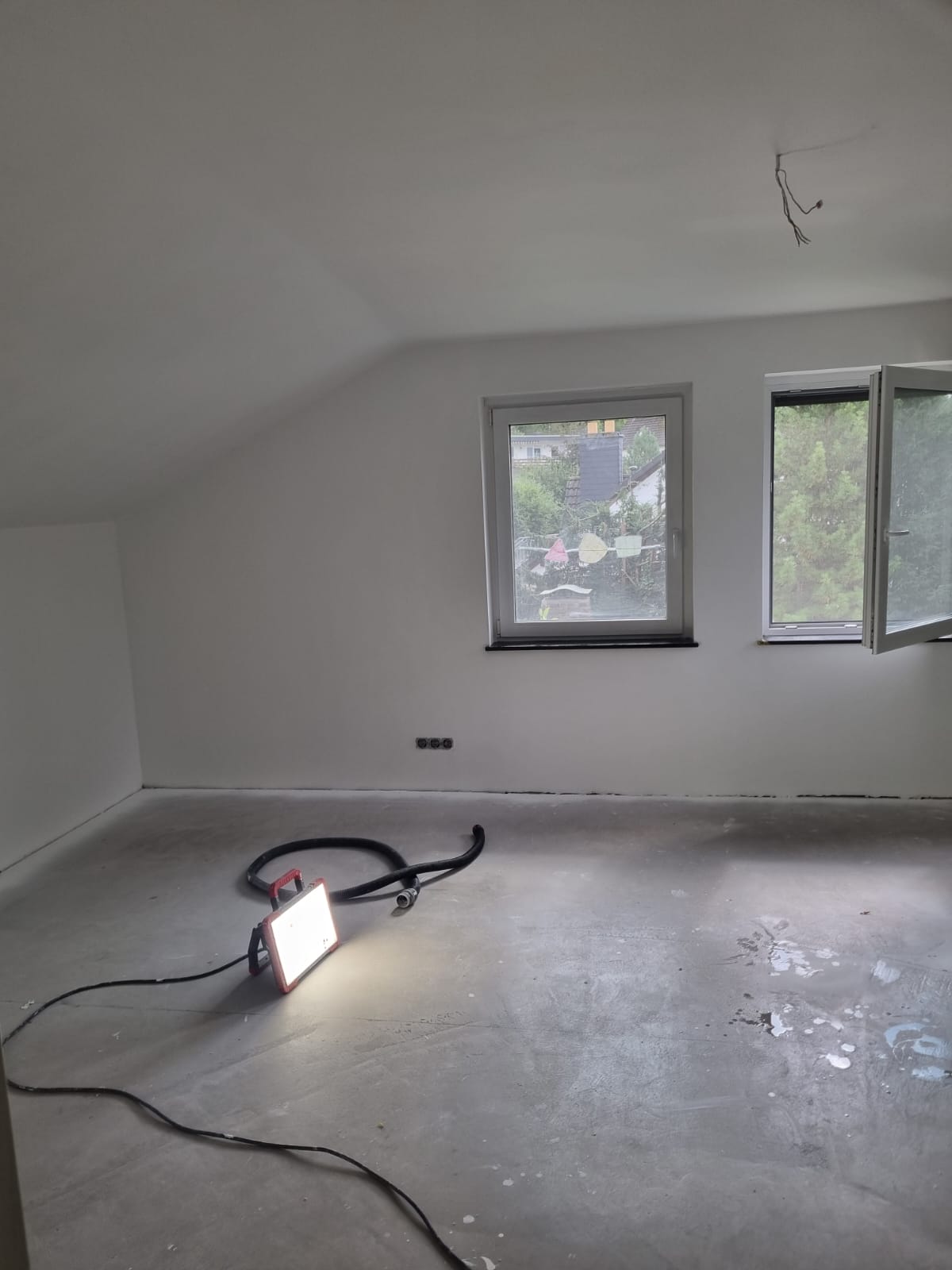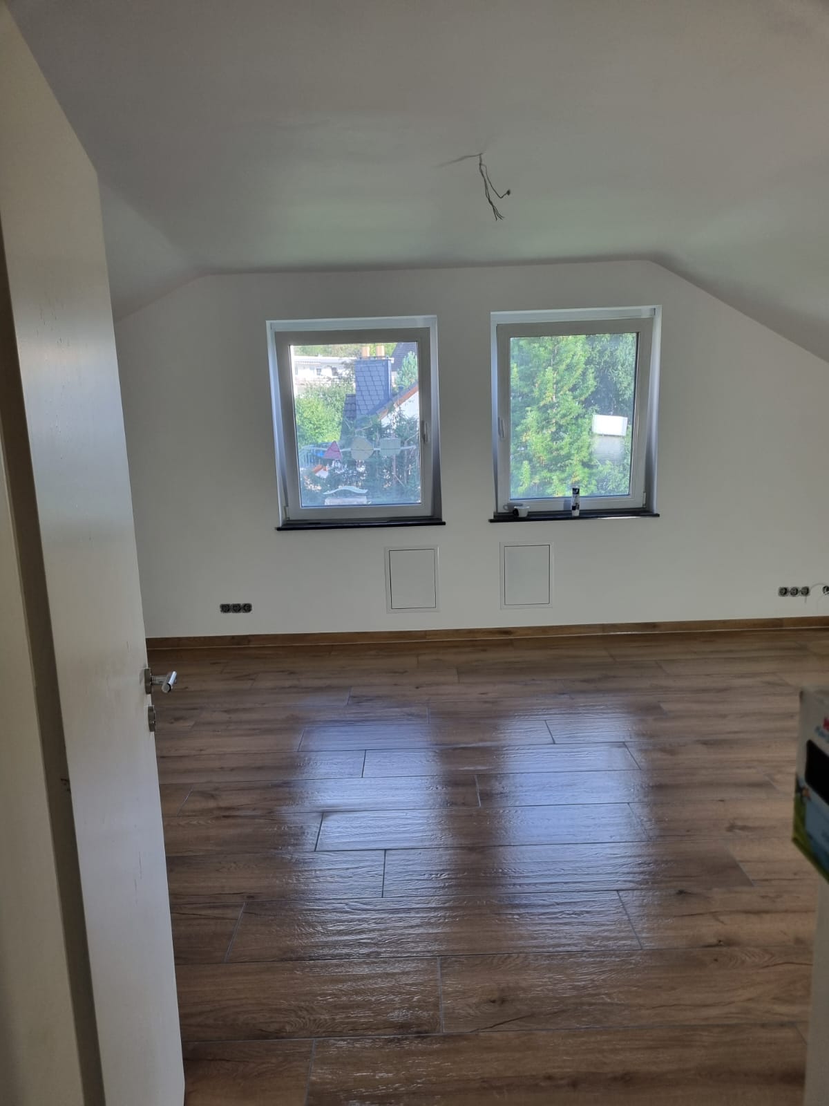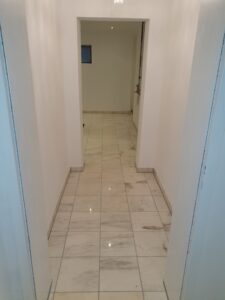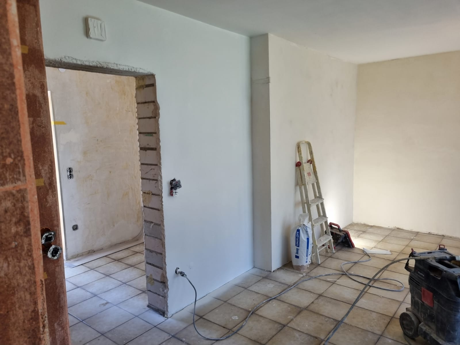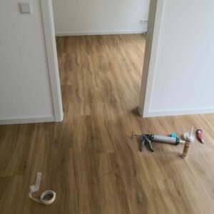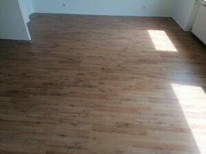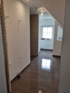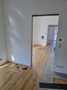 Links sehen Sie ein fertiges Projekt. Ein Wanddurchbruch nebst Spachtel- & Malerarbeiten sämtlicher Wände und die Verlegung eines neuen Bodens.